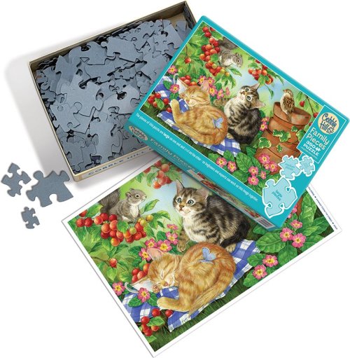 Skládá celá rodina! Jedinečnost rodinného puzzle od výrobce Cobble Hill spočívá v tom, že balení obsahuje dílky ve třech odlišných velikostech. Dílky mají malou, střední a velkou velikost a skládání je tak pohodlné pro děti, rodiče i prarodiče. V jedné části obrázku jsou velké dílky, které jsou díky svým rozměrům vhodné pro menší děti. Na druhé straně skládaného motivu jsou malé dílky, vhodné pro dospělé a větší děti, které jsou již zvyklé skládat puzzle. Prostřední část puzzle obsahuje dílky střední velikosti, na těchto dílcích jde zřetelně vidět skládaný motiv a sestavování obrázku je tak vhodné pro starší děti, babičku i dědečka. Velikosti dílků: velké cca 6 cm střední cca 3,5 cm malé cca 2 cm Raznice puzzle COBBLE HILL nekopíruje standardní mřížku, rohy a hrany dílků nejsou vždy v jedné ose a dílky mají neobvyklý tvar. Obtížnost puzzle je tak vyšší než u klasické mřížkové raznice, kterou používají přední výrobci v Evropě. Součástí balení je i předloha o velikosti 31,6 x 22,9 cm. Rozměr složeného puzzle cca 67,6 x 48,9 cm