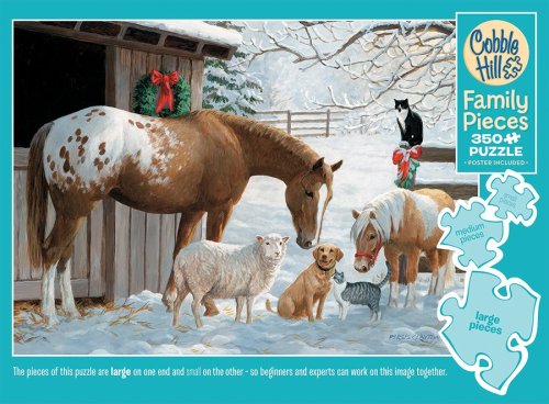 Skládá celá rodina! Jedinečnost rodinného puzzle od výrobce Cobble Hill spočívá v tom, že balení obsahuje dílky ve třech odlišných velikostech. Dílky mají malou, střední a velkou velikost a skládání je tak pohodlné pro děti, rodiče i prarodiče. V jedné části obrázku jsou velké dílky, které jsou díky svým rozměrům vhodné pro menší děti. Na druhé straně skládaného motivu jsou malé dílky, vhodné pro dospělé a větší děti, které jsou již zvyklé skládat puzzle. Prostřední část puzzle obsahuje dílky střední velikosti, na těchto dílcích jde zřetelně vidět skládaný motiv a sestavování obrázku je tak vhodné pro starší děti, babičku i dědečka. Velikosti dílků: velké cca 6 cm střední cca 3,5 cm malé cca 2 cm Raznice puzzle COBBLE HILL nekopíruje standardní mřížku, rohy a hrany dílků nejsou vždy v jedné ose a dílky mají neobvyklý tvar. Obtížnost puzzle je tak vyšší než u klasické mřížkové raznice, kterou používají přední výrobci v Evropě. Rozměr složeného puzzle cca 67,6 x 48,9 cm
