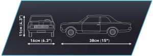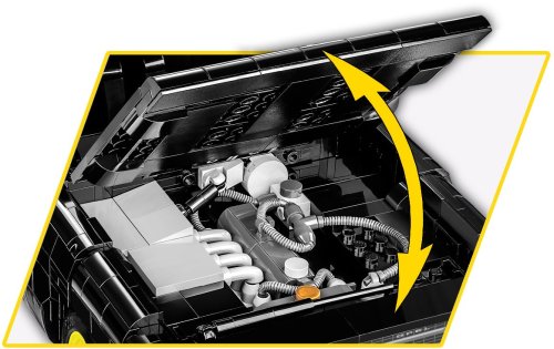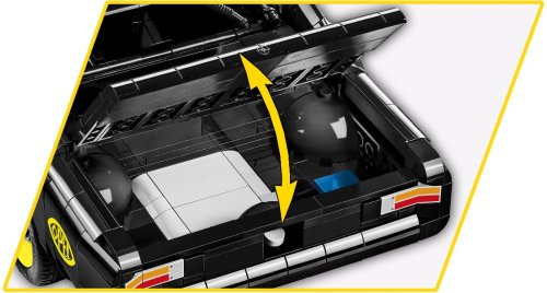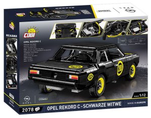 Postavte si model legendární model "Černé vdovy" v měřítku 1:12. Sestavený model měří na délku 38 cm! Čeká vás spousta překvapení: pohyblivý volant, kterým můžeme otáčet koly, panty pro otevírání dveří, dokonalá karoserie s ozdobnými prvky. Pod výklopnou kapotou je umístěn motor. Četné detaily, jako jsou kliky, světla a hodiny, vytvářejí dokonalý celek. Závodní číslo 201 je vytištěno na karoserii vozu, stejně jako další grafika, kvalitním stálobarevným tiskem. Už žádné samolepky. Balení obsahuje 2 078 kostek, neobsahuje figurky. Sportovní vůz Opel Rekord C je vyrobený pod licencí Opel.