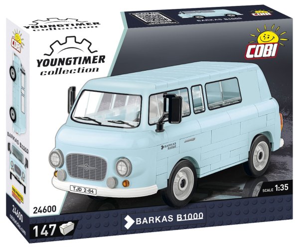 Postavte si model Barkas B1000, dodávku a mikrobus vyráběný v NDR v letech 1961 až 1991 v nové světle modré barvě. Jedná se o jediný vůz této třídy vyráběný ve východním Německu a hlavně tam používaný. Model byl věrně reprodukován v měřítku 1:35. Balení obsahuje 147 kostek stavebnice.