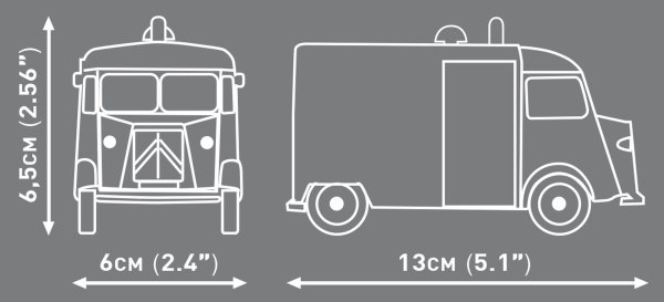Máte rádi precizně vyrobené modely a ikonická auta s duší? Pokud ano, tato sada je pro vás! Toto ikonické policejní auto, přímo z francouzských ulic, se nyní může objevit na vaší poličce. Neváhejte – přidejte si ho do své sbírky a zažijte atmosféru francouzských ulic v retro stylu! Francouzská automobilová klasika – Citroën Type H Tento ikonický model Citroën byl představen v roce 1947 na pařížském autosalonu. Postaven na jednoduchém a robustním podvozku, si rychle získal uznání pro svou všestrannost. Jeho jedinečný vzhled – karoserie z vlnitého plechu inspirovaná německým letadlem Ju 52 – udělal z Citroënu Type H ikonu francouzské ulice. Retro policejní klasika Verze tohoto vozidla upravené pro uniformovanou službu používala francouzská národní policie a národní četnictvo. Od 50. let do začátku 80. let 20. století sloužily k různým účelům – od přepravy policistů, přes přepravu zadržených, až po mobilní velitelská stanoviště během protestů a shromáždění. Označení „Police“ nebo „Gendarmerie“ a tlumené barvy – nejčastěji tmavě modrá nebo černá – dodávaly těmto vozidlům robustní, ale zároveň rozpoznatelný vzhled. Typ H byl víc než jen dodávka – stal se symbolem poválečné Francie. Dnes, i když je k vidění jen zřídka, se stále objevuje ve filmech a na rallye klasických automobilů a přitahuje pozornost automobilových nadšenců a milovníků historie. Proč si vybrat Citroën Type H Police (1947–1981)? Citroën License – Tento model je oficiálně licencován legendární francouzskou automobilkou, což zaručuje autenticitu a historickou přesnost. To znamená, že získáte nejen hračku, ale také věrnou repliku vozidla, které zanechalo stopu v evropském motorismu. Měřítko 1:35 - Model je navržen v oblíbeném a všestranném měřítku 1:35, takže se perfektně hodí k dalším sadám COBI v tomto měřítku. To vám umožní snadno rozšířit vaši sbírku vozidel a vytvářet realistické diorámata a expozice. 180 dílků - Sada obsahuje 180 vysoce kvalitních kostek, z nichž každá je navržena tak, aby věrně replikovala skutečné vozidlo. Design zahrnuje detaily zachycující charakteristické rysy Citroënu Type H, díky čemuž je sestavení modelu skutečnou cestou časem. Pohyblivá kola a gumové pneumatiky - Model je vybaven realistickými gumovými pneumatikami a pohyblivými koly, které nejen zvyšují jeho estetickou přitažlivost, ale i funkčnost. Vozidlo se může volně pohybovat po různých površích – od stolu, koberce, dětského modelu až po sběratelskou vitrínu. Potisky místo samolepek - Veškerá grafika, text a označení na modelu jsou vytištěny přímo na kostky, bez použití samolepek. Díky této technologii jsou tisky odolné, průhledné a odolné proti oděru, což zajišťuje, že si model zachová svou estetickou přitažlivost po dlouhou dobu – i při intenzivním používání. Toto řešení ocení každý, kdo si cení kvality a odolnosti. Snadná a zábavná stavba – Sada obsahuje srozumitelný, ilustrovaný návod, který vás krok za krokem provedou celým procesem montáže. Bez ohledu na váš věk nebo zkušenosti bude stavba Citroënu Type H Police obohacujícím a poutavým zážitkem. Postavte si vlastní retro svět Sada Citroën Type H Police je perfektní volbou pro nadšence do veteránů, mladé stavitele a každého, kdo hledá nádech nostalgie na své poličce. Prohlédněte si další sady ze série ACTION TOWN CITROËN od COBI a vytvořte si vlastní sbírku klasických vozů. • 180 vysoce kvalitních prvků • Vyrobeno v EU společností s více než 35letou tradicí • Kostky splňují bezpečnostní standardy výrobků pro děti • Plně kompatibilní s jinými značkami stavebnic • Kostky s potiskem se během hry ani vlivem teploty nepoškrábou, nerozmažou a nevyblednou • 100% potisky, žádné samolepky • Jasný a intuitivní návod založený na ilustracích a podrobných pokynech • Měřítko 1:35