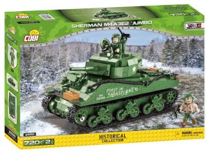 Postavte si model Sherman M4A3E2 „Jumbo“, což byla krátká série dobře obrněných tanků o pouhých 254 jednotkách. Sherman byl obvykle vyzbrojen 75 mm kanónem, namontovaným na upravené lafetě M62. Jumbo, vlastním jménem „Cobra King“, dostal 76mm kanón i koaxiální kulomet. Byl vydán 37. tankovému praporu 4. tankové divize na konci října 1944 a byl tankem velitele roty C. Proslavil se v zimě 1944 v Ardenách, kde jako první prolomil německé linie a dostal se k vojákům 101. výsadkové divize. Na památku této významné události namalovala posádka tanku grafiti, které najdete i na našem modelu. Balení obsahuje 720 kostek stavebnice a 2 figurky vojáků.