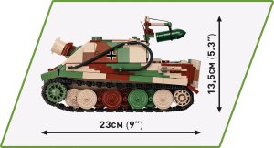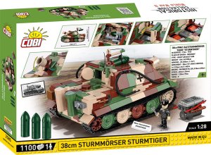Postavte si model Sturmtiger německé pancéřové dělo z druhé světové války postavené na podvozku tanku PzKpfw VI Tiger, vyzbrojené speciálním 38cm raketovým minometem (SturmMörser), který vrhá obrovské projektily na vzdálenost 5600 metrů. Sturmtiger byl navržen jako podpůrné vozidlo pěchoty během pouličních bojů. V letech 1943-1945 bylo postaveno pouze 18 exemplářů tohoto těžkého a komplikovaného zařízení. Balení obsahuje 1100 kostek a 1 figurku.