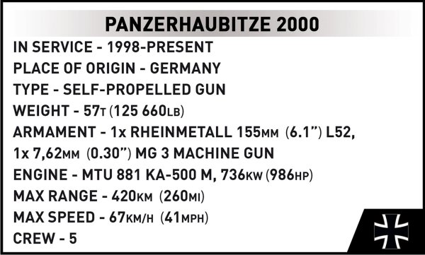 Postavte si model Panzerhaubitze 2000 je jedním z nejpokročilejších dělostřeleckých systémů na světě. Díky své technologii, dosahu a přesnosti hraje PzH 2000 klíčovou roli v moderních bojových operacích a poskytuje účinnou palebnou podporu. Je symbolem moderního dělostřelectva a dokladem vyspělé technologie německého zbrojního průmyslu. Balení obsahuje 1006 kostek.