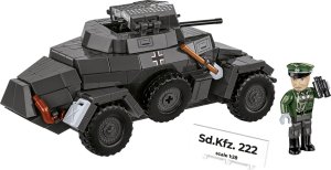 Postavte si model Sd.Kfz 222 jeden z nejznámějších německých vozidel z druhé světové války, což je důležitým prvkem průzkumných sil Wehrmacht. Díky svému lehkému pancéřování a vysoké mobilitě byl Sd.Kfz. 222 používán především k identifikaci, hlídání a podpoře pěchoty na různých válečných frontách. Přední strany vozidel byly chráněny o hmotnosti 8 mm silným ocelovým plechem, tenčím, 5 mm plechu, chráněným vrchním, zadním a podvozkem. Válečná nebyla obrněna shora, z této strany byla posádka chráněna pouze síťkou chránící před granáty a lehkými šrapnelmi. Balení obsahuje 502 kostek a 1 figurku.