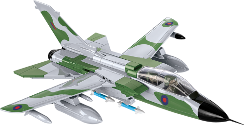 Postavte si model Panavia Tornado GR.1. Jedná se o víceúčelové bojové letouny s měnitelnou šípovitostí křídel, používané Royal Air Force (RAF) od 80. let 20. století do roku 2019, kdy byly vyřazeny z provozu. Panavia Tornado byl dvoumotorový proudový bojový letoun vytvořený konsorciem Panavia Aircraft GmbH, které zahrnovalo Německo, Itálii a Velkou Británii. Ve výzbroji RAF byly tři hlavní varianty letounů Tornado: GR.1, GR.4 a GR.4A. Model GR.1 byl první verzí uvedenou do provozu v 80. letech 20. století Tornáda se používala jako pozemní podpůrná letadla, stíhačky a pro útoky na vzdušné cíle. Balení obsahuje 520 kostek stavebnice a 2 figurky vojáků.