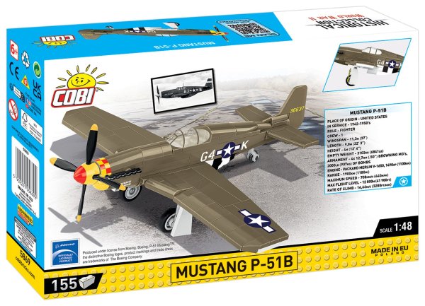 Postavte si model Mustang P-51B jednoho z nejslavnějších bojovníků druhé světové války. Určeno pro zvláštní pořadí britského letectví RAF. Později byl přijat do služby americkým USAF a dalšími spojeneckými silami, včetně polského letectva. Postupem času se Mustang P-51B stal symbolem efektivity a modernosti ve vojenském letectví. Balení obsahuje 155 kostek.