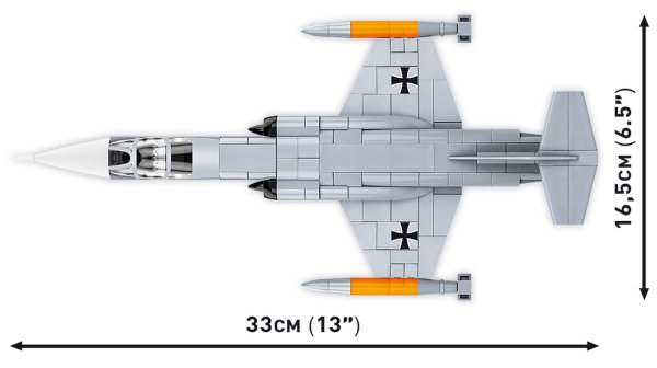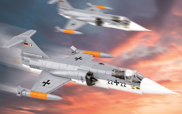 Postavte si stíhačku Lockheed F-104 Starfighter v měřítku 1:48 Stanice Lockheed F-104 Starfighter je vynikající příležitostí k sestavení modelu jedné z nejslavnějších, nejkontroverznějších a nejpozoruhodnějších stíhaček 20. století, která sloužila v německé armádě. Je to příběh o technologické soutěži, ambicích a tenké hranici mezi úspěchem a neúspěchem. Německá stíhačka Starfighter od 33. perutě JaboG Tento model je dalším příkladem spolupráce společnosti COBI s renomovaným Německým námořním muzeem. Vychází z F-104 německého letectva a byl jedním z 210 letadel licencovaných konsorciem společností Messerschmitt, Dornier, Heinkel a SIAT. Sloužil u stíhací bombardovací perutě JaboG 33 se základnou v Büchelu poblíž Cochemu/Mosely a dnes je vystaven v Německém námořním muzeu. Rychlost, technologie a kontroverze – Příběh stíhačky F-104 Starfighter Lockheed F-104 Starfighter se okamžitě zapsal do historie letectví. Byl to první sériově vyráběný stíhač schopný překonat Mach 2 – dvojnásobek rychlosti zvuku. Byl navržen jako stíhací letoun a později našel službu v mnoha leteckých silách po celém světě. Jeho aerodynamické linie, štíhlý trup a charakteristická lichoběžníková křídla s velmi malou plochou a negativním vztlakem vynesly letounu přezdívku „střela s mužem uvnitř“. A skutečně, F-104 vypadal jako střela s křídly. Byl to rychlý, moderní letoun, ale také náročný a někdy přímo nebezpečný na ovládání. Vystavený model replikuje verzi F-104G používanou Luftwaffe – německým letectvem. Tento exemplář patřil stíhací bombardovací peruti JaboG 33 se základnou v Büchelu a v současné době je umístěn v Německém námořním muzeu, kde slouží jako muzejní exponát. F-104 – Stroj plný rozporů Ačkoli F-104 ohromoval svými schopnostmi, v Německu si rychle vysloužil pověst smolaře. Z 916 letadel uvedených do služby se jich až 300 zřítilo při různých nehodách. Tragicky zahynulo 115 pilotů. Navzdory technologickému pokroku byl design neúprosný. Právě tato kontroverze udělala ze Starfighteru ikonu – symbol pokroku i ceny. V polovině 80. let byl F-104 nahrazen novějšími konstrukcemi, jako jsou Panavia Tornado a F-4 Phantom, ale jeho legenda přetrvává dodnes. Proč si vybrat stavebnici COBI Lockheed F-104 Starfighter? Tento model byl navržen s ohledem na nadšence do modelářství. Skládá se ze 420 pečlivě navržených dílků, které umožňují s mimořádnou přesností znovu vytvořit siluetu ikonického F-104. Co odlišuje tuto stavebnici? • Měřítko 1:48 – Díky velkému měřítku model vypadá působivě a zároveň umožňuje přesnou reprodukci konstrukčních detailů a proporcí letadla. • Oficiálně licencováno Deutsches Marinemuseum – Zaručená autenticita a shoda se skutečným exponátem, od lakování až po historické označení Luftwaffe. • Pohyblivé části – Model obsahuje pohyblivé části, které umožňují znovu vytvořit základní manévry letadla. Nejedná se jen o statický model – je to dynamická miniatura připravená k akci! • Potisky místo samolepek – Všechny značky jsou trvale vytištěny, což zvyšuje estetickou přitažlivost stavebnice a zajišťuje její dlouhou životnost – i při častém používání. • Stojan s plaketou – Součástí dodávky je stojan a štítek, který umožňuje profesionální vystavení modelu – ve vitríně, na poličce nebo na stole. • Jasný návod k sestavení – I když nemáte mnoho zkušeností se stavěním modelů z kostek, s touto sadou nebudete mít žádný problém. Podrobný návod vás provede celým procesem.