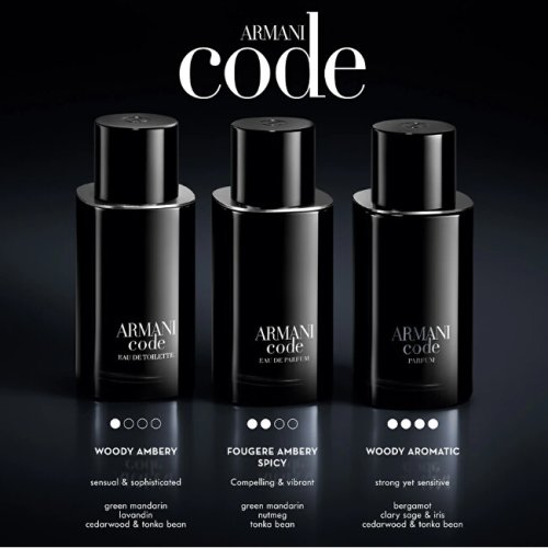 Giorgio Armani Code Pour Homme – ikonická vůně, která zosobňuje mužskou eleganci, charisma a přirozenou sebejistotu. Nová parfémovaná voda přináší moderní pojetí klasického stylu. Je určena muži, který má dokonalý vkus, vystupuje s lehkostí gentlemana a zanechává za sebou dojem vytříbené rafinovanosti. Vůně se otevírá svěžími, lehce pikantními tóny zelené mandarinky, které dodávají energii a jiskru. Postupně se rozvíjí do teple kořeněného srdce muškátového oříšku, jenž přináší hloubku a mužnou smyslnost. Základ tvoří tonka boby se svou charakteristickou medově-tabákovou stopou, která vůni propůjčuje hřejivost a nezapomenutelný podpis. Vůně byla uvedena na trh v roce 2024. Součástí sady je: