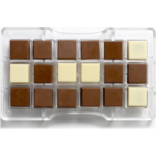 Čokoládová forma čtverce 20 x 12 x 2 cm pro snadné a rychlé vytváření čokoládových dekorací či pralinek.