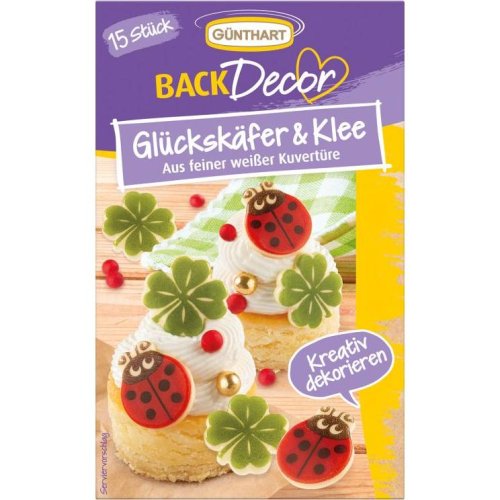 Čokoládové dekorace beruška a čtyřlístek. V balení 15 ks.