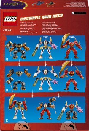 S tímto zbrusu novým přizpůsobitelným robotem si děti postaví model podle vlastní fantazie! Díky odnímatelným nohám, pažím a trupu ho můžete zkombinovat se 2 dalšími roboty: Soriným živelným technickým robotem (71807) a Kaiovým živelným ohnivým robotem (71808) (prodávají se samostatně). Děti si užijí hodiny zábavného skládání a vytvoří vlastní jedinečnou akční figurku.