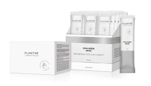 PLANTHÉ Collagen drink je doplněk stravy se sladidly ve formě originálního chutného nápoje s příjemnou ovocnou chutí, který umožňuje doplnění vysoce kvalitního kolagenu a stimulaci jeho tvorby, která se s narůstajícím věkem zpomaluje.Kolagen je doplněn COLLAGEN+ komplexem 8 účinných látek – zinkem, biotinem, vitaminem C, vitaminem B5, extrakty višně, Aloe vera s fytosteroly, zeleného čaje a regeneračním faktorem VITAE® z chlorelly, které prokazatelně regenerují, projasňují a omlazují pleť.Kolagen je vnímán jako stavební kámen nejen pro zdravou a pružnou pleť, ale také pro klouby a šlachy. Tento protein je zodpovědný za mladistvý vzhled pleti, za udržení struktury, pevnosti a elasticity kůže. S přibývajícím věkem však hladina kolagenu a schopnost jeho biosyntézy v našem těle klesá, což vede k výskytu vrásek, ztrátě elasticity, svěžesti i hydratace pleti.Právě doplňování kolagenu zevnitř může tělu a pokožce poskytnout potřebné stavební prvky pro tvorbu kolagenu. Pravidelné užívání kvalitního kolagenu s dalšími aktivními složkami, které navíc stimulují biosyntézu kolagenu, pak může vést k hladší, zdravější a celkově mladistvější pleti a ke zpomalení procesu stárnutí pokožky i lepší kvalitě vlasů a nehtů.