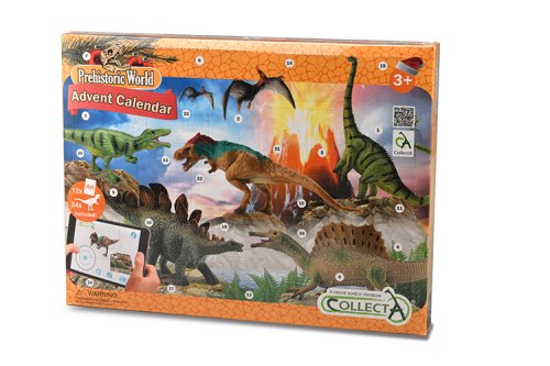 Adventní kalendář zpříjemní čekání na Ježíška. Každý den od 1. až do 24. prosince ti čekání zpříjemní jedna figurka dinosaura. Adventní kalendář obsahuje 12 kartiček, pomoci kterých můžeš dinosaury rozpohybovat. Jak na to? Stáhni si do svého mobilního telefonu nebo tabletu aplikaci CollectA AR. Otevři aplikaci a namiř telefon nebo tablet na kartičku zvířátka. Zvířátko se ti začne hýbat. Pomocí šipek ovládáš jeho pohyb. Bude chodit, kam budeš chtít. Můžeš si ho i pohladit. Pomoci tlačítka „otevřené tlamy“ ovládáš zvukové efekty. Tlačítko „i“ skrývá informace o zvířátku v anglickém jazyce. Zvířátko si můžeš i vyfotit. Fotky se uloží do galerie telefonu nebo tabletu.