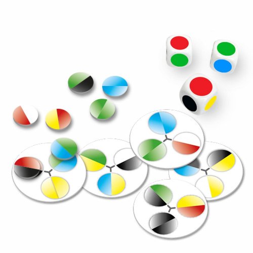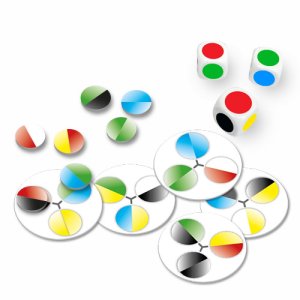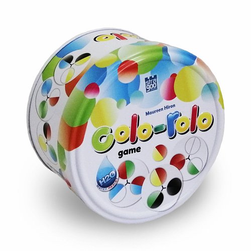 Colo Rolo – Hoď tři kostky, hledej kombinaci barev na kartách. Buď nejrychlejší a nejchytřejší. Další postřehová hra od Maureen Hiron. První na řadě hází všemi kostkami najednou a dle nastalé kombinace hledají všichni hráči správný žeton. Hráč, který najde žeton jako první jej umístí na jednu ze 7 karet hracího plánu. Žeton musí umístit na stejně barevné kolečko. Pokládá ho rubem nahoru, aby byla viditelná strana se 4 barvami, a nasměruje svou barvu ke středu karty (tam kde je čárka). Tím určuje, že je žeton jeho a získává body dle tabulky. Počet hráčů 2-5. Rozměry balení 9 x 5 x 9 cm. Vhodné pro děti od 5 let.
