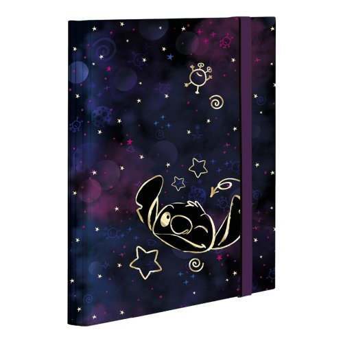 Školní box s plochou gumičkou a vnitřní fixační klopou, sladěný s kolekcí Stitch Gold. Kvalitní a odolné zpracování vhodné na denní přenos školních sešitů a jiných dokumentů.<br> <br> • formát: A4<br> • materiál: lepenka<br> • plochá fixační gumička