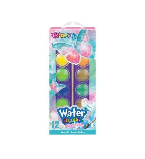 Kvalitní vodové barvy s vysokým podílem pigmentu. Při opakovaném používání nepopraskají. Praktické plastové pouzdro s kulatým štětcem s dřevěnou násadkou.