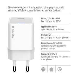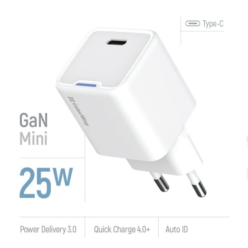 ColorWay GaN Mini představuje moderní kompaktní nabíječku využívající pokročilou GaN (Gallium Nitride) technologii, která zajišťuje menší rozměry, nižší hmotnost a vyšší účinnost oproti tradičním adaptérům. S maximálním výkonem 25 W a podporou nejnovějších rychlonabíjecích protokolů včetně PD 3.0 PPS, Apple Fast Charge a Quick Charge 4.0+ nabízí optimální řešení pro každodenní nabíjení i cestování.