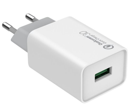 Síťový adaptér s výstupem USB, podporou Quick Charge 3.0 a výstupním výkonem 18 W.