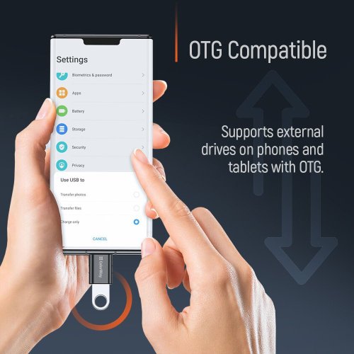 Díky podpoře OTG (On-The-Go) funkcí můžete k smartphonům a tabletům připojovat externí úložiště, klávesnice nebo myši pro rozšíření možností mobilních zařízení.