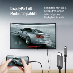 Pro správnou funkci je nutné, aby připojované zařízení podporovalo DisplayPort Alt Mode přes USB-C port. Kompatibilní s moderními notebooky, tablety a smartphony s USB-C konektorem.