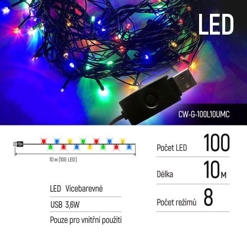 ColorWay CW-G-100L10UMC 10 m; ColorWay LED řetěz má 100 LED diod a 8 režimů provozu pro slavnostní atmosféru.