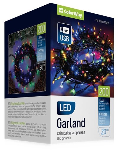 ColorWay LED řetěz má 200 LED diod a 8 režimů provozu pro slavnostní atmosféru. Nenápadný, průhledný kabel a miniaturní LED diody dodávají vzdušnost a příjemné pocity díky vícebarevné záři. Řetěz bude skvělým doplňkem interiéru domu. Vynikat bude zejména na vánočním stromku, pomáhá dotvořit jedinečnou sváteční atmosféru. Ideální pro zdobení letních teras, kaváren, výkladů a venkovních akcí.