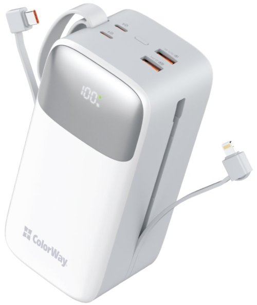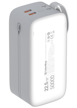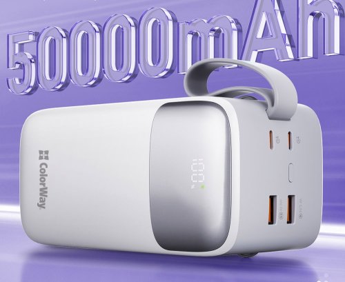 Powerbanka ColorWay CW-PB500LPA4WT-PDD představuje ideální řešení pro napájení mobilní elektroniky na cestách. Vyznačuje se obří kapacitou 50 000 mAh, díky čemuž je vhodná i pro opakované nabíjení zařízení, jako jsou smartphony, tablety, sluchátka, chytré hodinky apod. Podporuje širokou škálu protokolů rychlého napájení – jako například Power Delivery 3.0, Quick Charge, Apple Fast Charge a další. LED displej vám umožní sledovat míru nabití baterie.