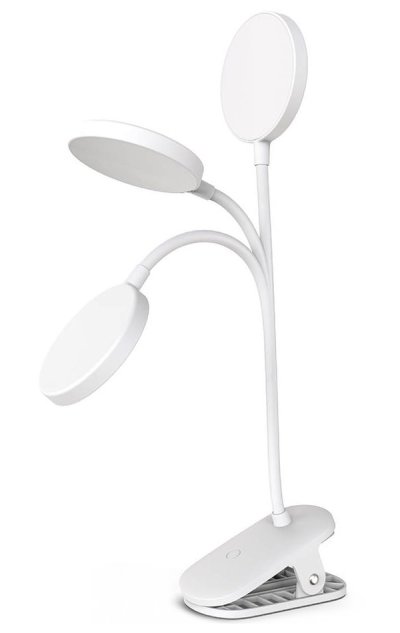Klipová lampička vhodná nejen na čtení nabízí 24 LED, světelný tok 100 lm a výkon 3,5 W. Integrovaná baterie s kapacitou 1 800 mAh zajistí až 7 hodin svícení a poté ji jednoduše nabijete pomocí přiloženého USB kabelu. Jednoduché ovládání poskytuje dotykové tlačítko, díky kterému lze upravit jas a teplotu barev. Díky klipu lze lampu upevnit na různé předměty: police, postel nebo hrana desky stolu. Flexibilní 360° rameno umožňuje přizpůsobit úhel osvětlení jakýmkoli potřebám.