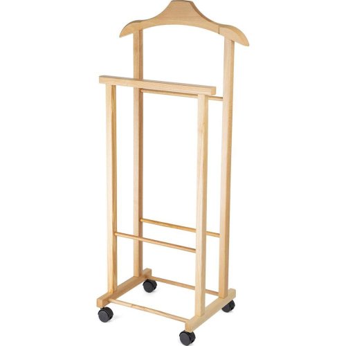 Dvojitý závěsný prostor Různá výška závěsného ramínka a tyče Kolečka Rozměry: 97 x 33 x 29 cm Materiál: dřevo Barva: světlé dřevo