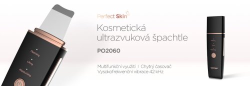 Kosmetická ultrazvuková špachtle PO2060 je zpracovaná v elegantním černém provedení, které je doplněné o prvky v barvě rosegold. Je součástí designově sladěné řady Perfect Skin zahrnující nejvyšší modely pro péči o vaši pleť.