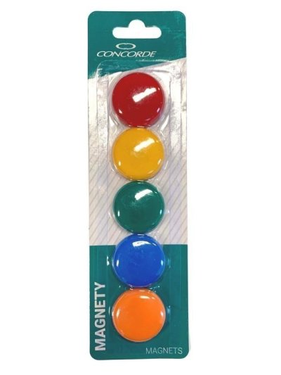 Barevné kulaté magnety o průměru koláče 35mm. Průměr vnitřního magnetu 1,6mm. Magnety jsou vhodné kdekoliv Vás napadne, například na nástěnky, flipcharty, tabule nebo i lednice. Balení obsahuje 5 kusů na blistru.