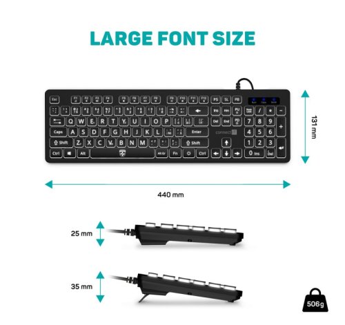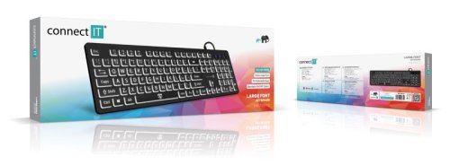 CONNECT IT FOR HEALTH LargeFont klávesnice s velkým fontem, podsvícená/USB/CZ + SK verze, ČERNÁ