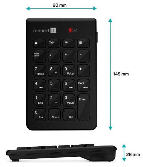 CONNECT IT NumCALC bezdrátová numerická klávesnice, (+ 1x AAA baterie zdarma), ČERNÁ