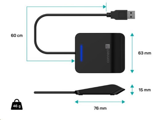 CONNECT IT USB čtečka eObčanek a čipových karet, ČERNÁ