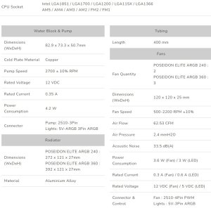The Poseidon Elite ARGB AIO liquid cooler delivers high cooling performance. With unique 90-degree UTTERIGHT fins, high-efficiency fans, and brilliant ARGB lighting in an infinity mirror design, your system will run and look at its best.