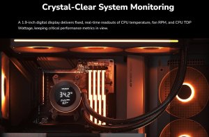 Digitální displej poskytuje jasné údaje v reálném čase o teplotě CPU, otáčkách ventilátoru a příkonu CPU TDP, takže máte přehled o důležitých výkonnostních ukazatelích.