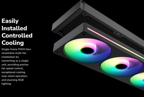 - Jednorámové ventilátory PWM zajišťují efektivní připojení, přesně řízené chlazení a živé RGB osvětlení.