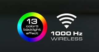 Tato herní myš umožňuje zvolit jeden z 13 různých režimů podsvícení (11 jednobarevných, 2 vícebarevné) pouhým kliknutím na tlačítko podsvícení. Přizpůsobte si herní atmosféru pouhým pohybem ruky!