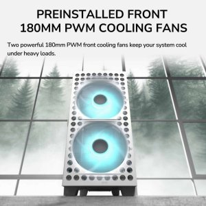 Předinstalované přední 180mm PWM chladicí ventilátory