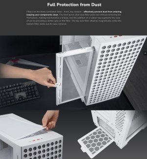 Filtry na třech větraných stranách - přední, horní a spodní - účinně zabraňují vnikání prachu a udržují vaše komponenty čisté.