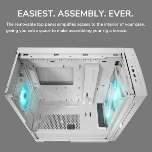 Odnímatelný horní panel zjednodušuje přístup do vnitřku skříně a poskytuje vám další prostor, díky kterému je sestavení vaší sestavy hračkou.