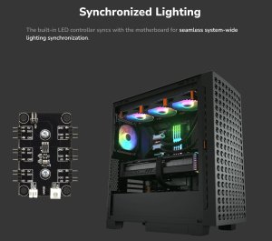 Vestavěný řadič LED se synchronizuje se základní deskou pro bezproblémovou synchronizaci osvětlení celého systému.