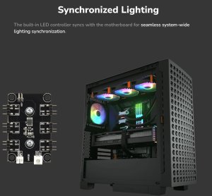 Vestavěný řadič LED se synchronizuje se základní deskou pro bezproblémovou synchronizaci osvětlení celého systému.