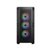 Airface Pro RGB má čtyři 120mm ventilátory ARGB. Pomocí tlačítka RGB můžete ovládat několik úžasných světelných efektů. Vestavěný LED ovladač je kompatibilní s 5V připojením ARGB základních desek pro synchronizaci osvětlení v rámci celého systému.