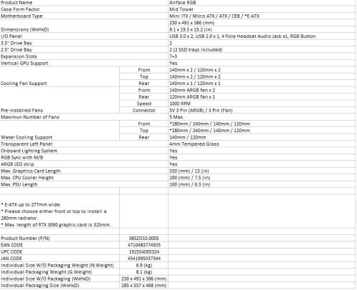 Airface RGB is a combination of elegance and cooling performance. The airflow front panel brings superior airflow and optimized cooling performance. Moreover, it also includes two massive 140mm ARGB fans, a 120mm ARGB fan, and an ARGB LED strip to bring you advanced illumination control. Airface RGB is a 230mm wide-body design mid tower case that offers abundant space for CPU cooler, cable management, compatibility for an E-ATX motherboard, and high-end graphic cards up to 330mm. It’s an upgrade in every aspect compared to the past gaming cases.
