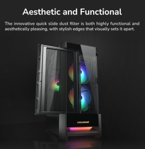 Duoface RGB je kombinací elegance a chladicího výkonu. Má dva výrazné přední panely, jeden pro oslnivé světelné efekty RGB, druhý pro vynikající proudění vzduchu a optimalizovaný chladicí výkon. Kromě toho obsahuje také dva masivní 140mm ventilátory ARGB, 120mm ventilátor ARGB a zvýrazněné logo, které vám přináší pokročilé ovládání osvětlení. Duoface RGB je skříň typu mid tower s 230mm širokým tělem, která nabízí dostatek prostoru pro chladič procesoru, správu kabelů, kompatibilitu pro základní desku E-ATX a špičkové grafické karty do 330 mm. Ve srovnání s minulými herními skříněmi jde o vylepšení v každém ohledu.