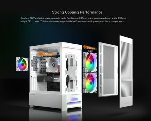 Vnitřní prostor Duoface RGB podporuje až pět ventilátorů, 280mm radiátor vodního chlazení a 190mm chladič procesoru. Tento obrovský chladicí potenciál zabraňuje přehřívání vašich komponentů.