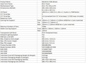 MG140 Air RGB’s compact layout allows you to install five fans, a 280mm water cooling radiator, and a 160mm CPU cooler. This immense cooling potential will enable you to choose components freely.