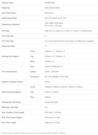Styl, výkon a prostor pro vaše herní ambice. MX360 RGB je moderní počítačová skříň, která kombinuje minimalistický design s výrazným ARGB osvětlením a špičkovou podporou komponent. Ideální volba pro hráče i nadšence do PC sestav.